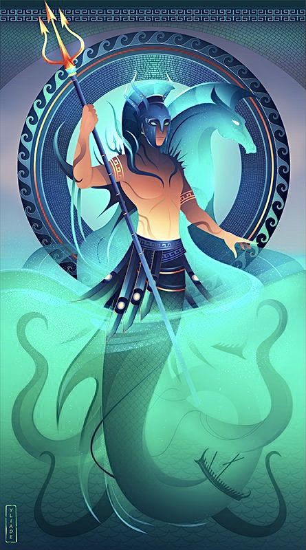 Na mitologia grega, Posídon, também conhecido como Poseidon assumiu o estatuto de deus supremo do mar, conhecido pelos romanos como Netuno. Também era conhecido como o deus dos terremotos. Os símbolos associados a Posídon com mais frequência eram o tridente e o golfinho.
