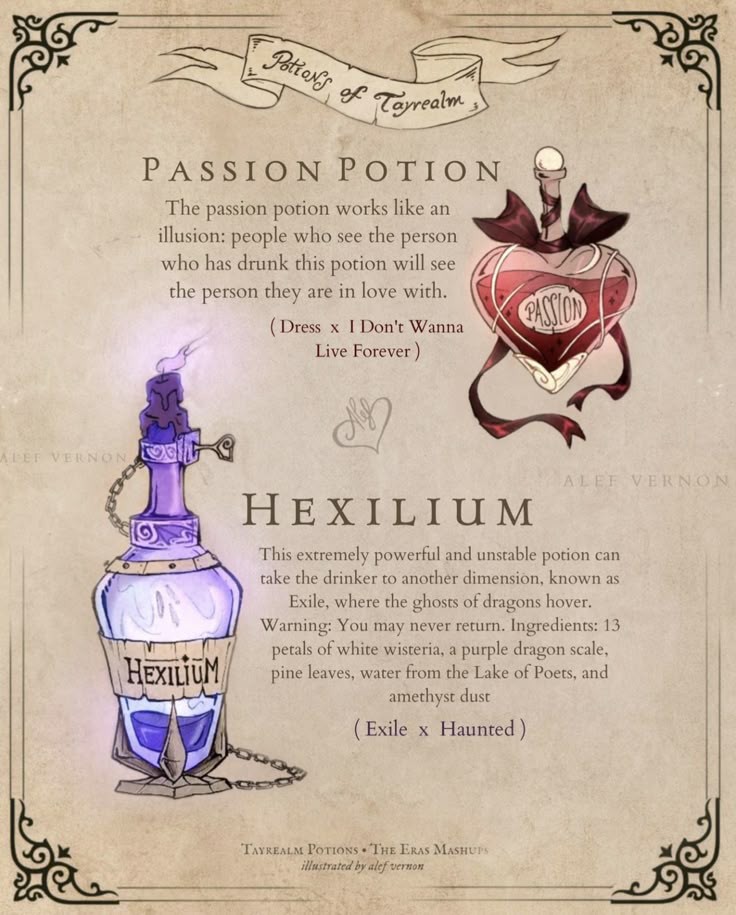 Efeito: Ao misturar o fio de cabelo de uma pessoa na poção e tomar, você fica exatamente igual a pessoa, com mesmas características físicas por um dia inteiro.